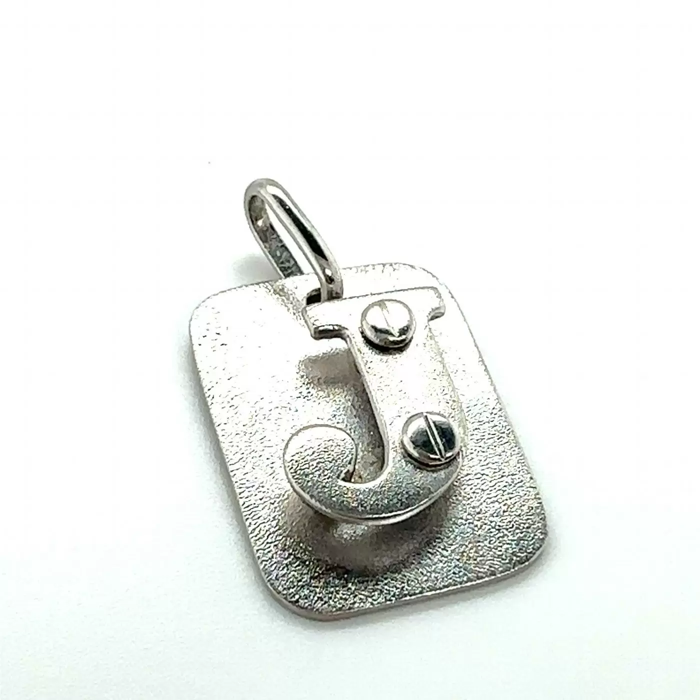 Sterling silver plate pendant with initial J fit with two screws.